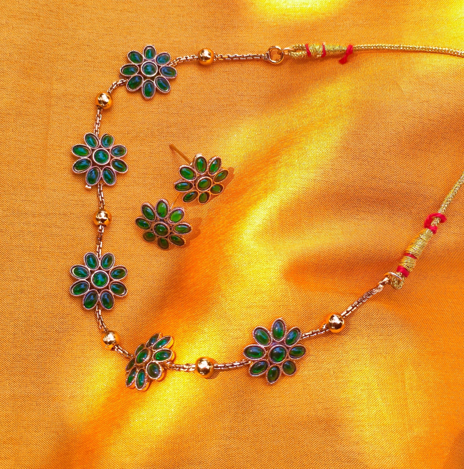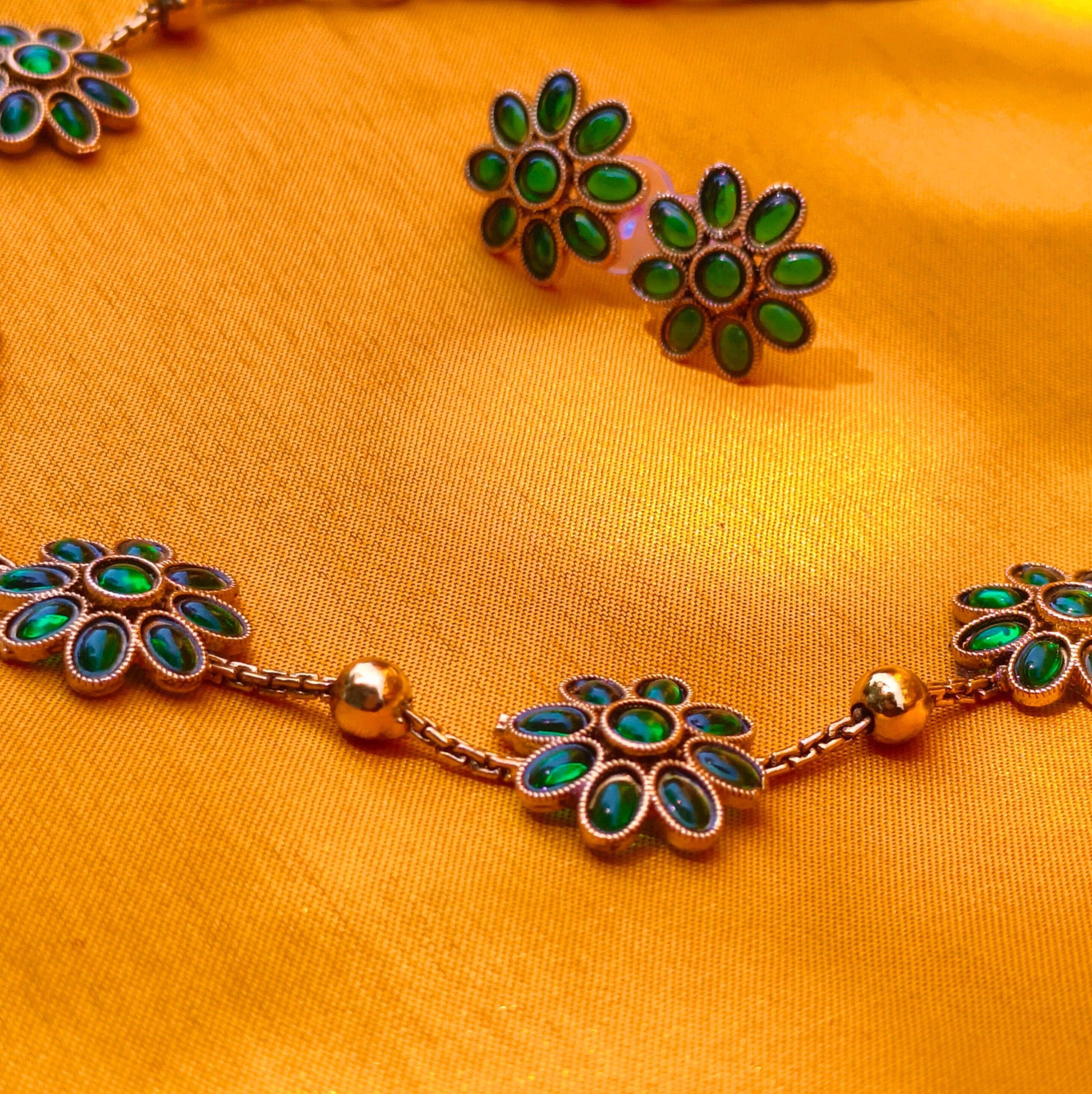 Emerald Green Floral Necklace Set